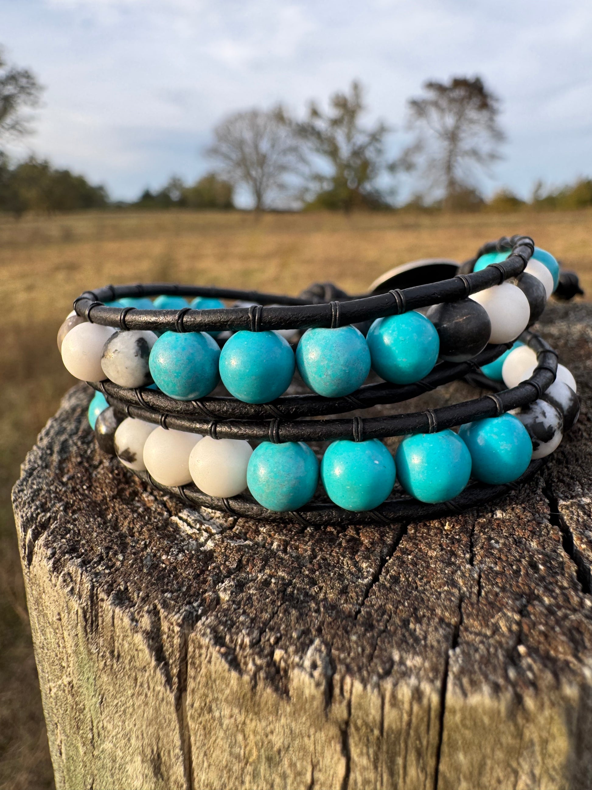 Turquoise, White and Black wrap bracelets