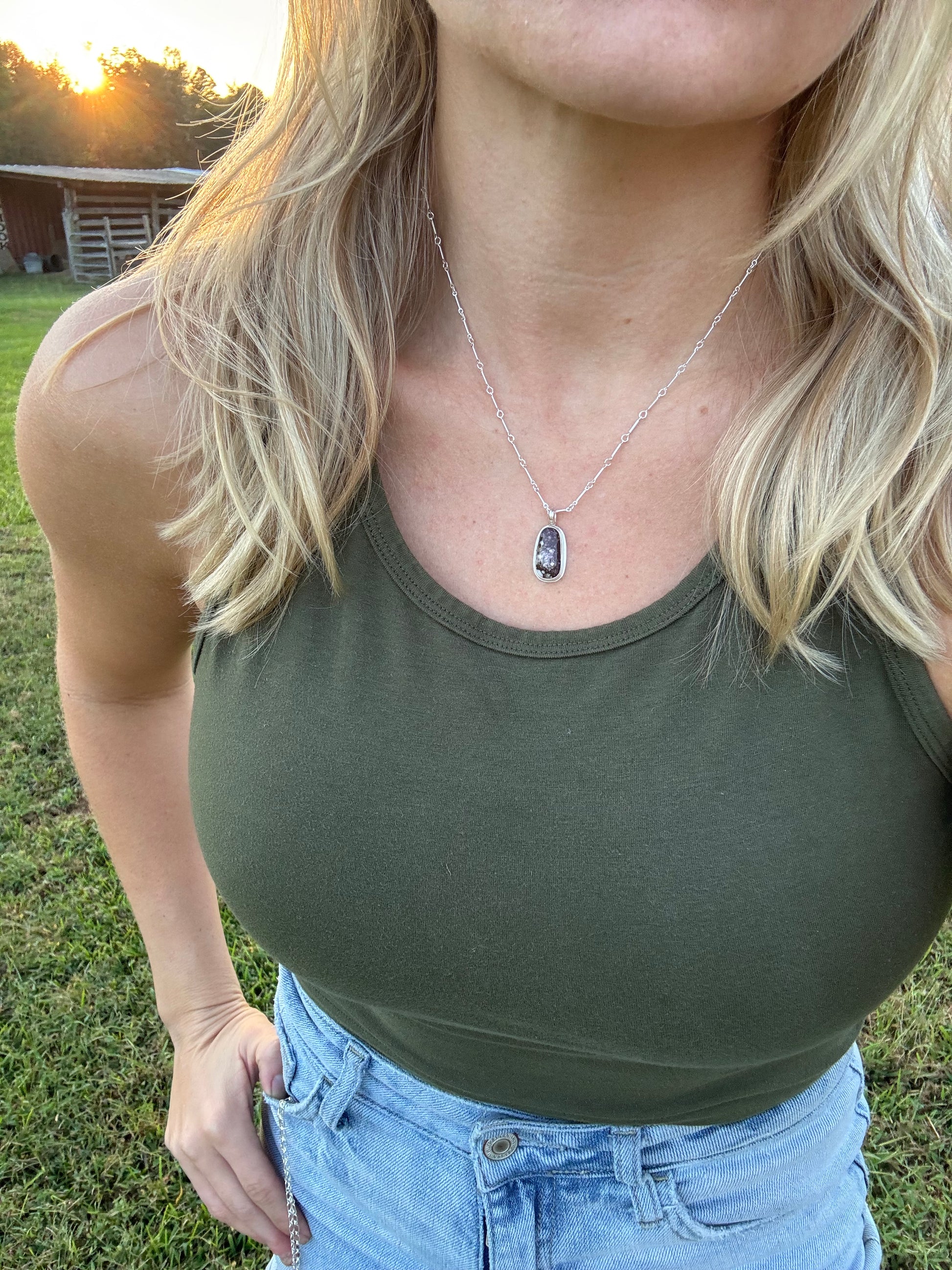 Experience the beauty of nature with our Wild Horse Magnesite Dainty Pendant. The unique brown veining gives it an earthy feel, while the simplistic sterling silver setting adds a touch of elegance. With an 18 inch chain, this pendant is perfect for everyday wear.